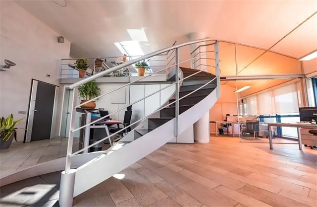 辦公室裝修設計中常見的樓梯類型有直梯,弧梯和旋梯三種,其中直梯是最傳統,最常見的樓梯形式,使用最方便和安全,但在造型上不如其他樓梯漂亮。弧形在造型上大膽,夸張,比較容易營造出豪華氣派的感覺,但是對于空間要求較高,比較適合于一些較大,較豪華的公共空間和別墅。