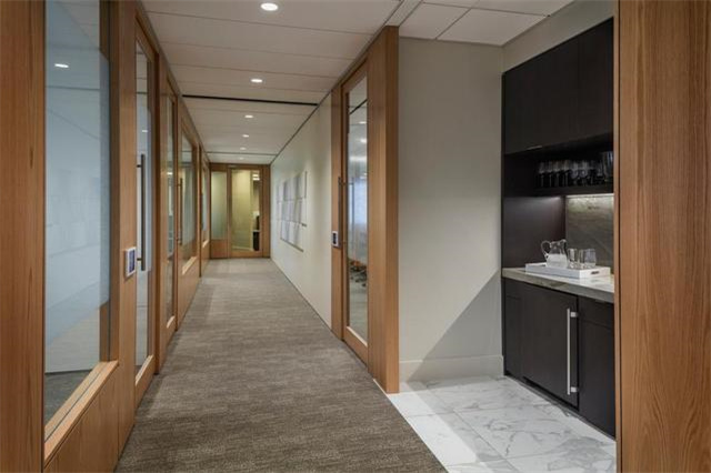辦公室中過道的面積有限,導致可發(fā)揮的空間不是很大,那么我們可以嘗試把視線重點放在地面上,畢竟地面是相對來說最完整的一塊區(qū)域。給過道的地面換上有趣的地磚,讓過道與其他區(qū)域區(qū)分開來。其他區(qū)域可以簡單一點,甚至不做裝飾,用以凸顯出地面的亮點。